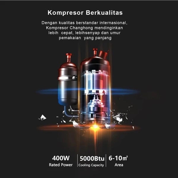 AC ini ideal untuk kamar tidur, ruang kerja kecil, kamar kos atau ruangan yang tidak terlalu besar yang membutuhkan solusi pendinginan efisien dengan harga bersahabat